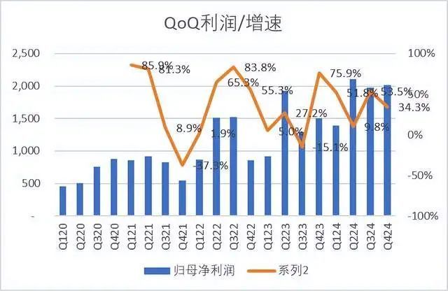 归母净利润为75亿,同比+34.7%,增速大幅高于收入增速;单四季度净利润为19亿,同比+29.3%。