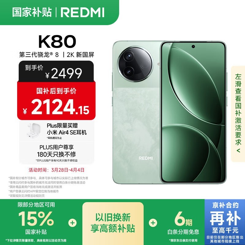 Redmi K80 5G手机山峦青配色12GB+256GB促销中