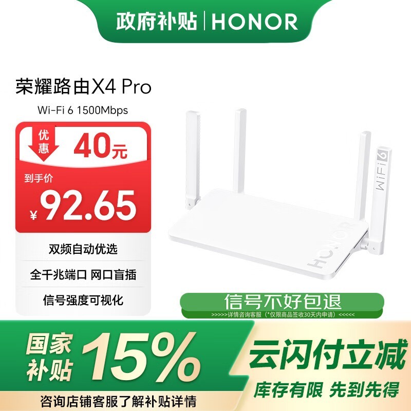 荣耀HONOR X4 Pro路由器WiFi6双频千兆家用路由器