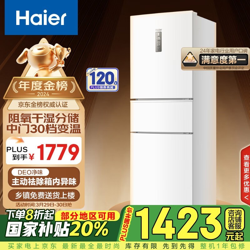 海尔255升风冷三开门冰箱京东优惠价1417元