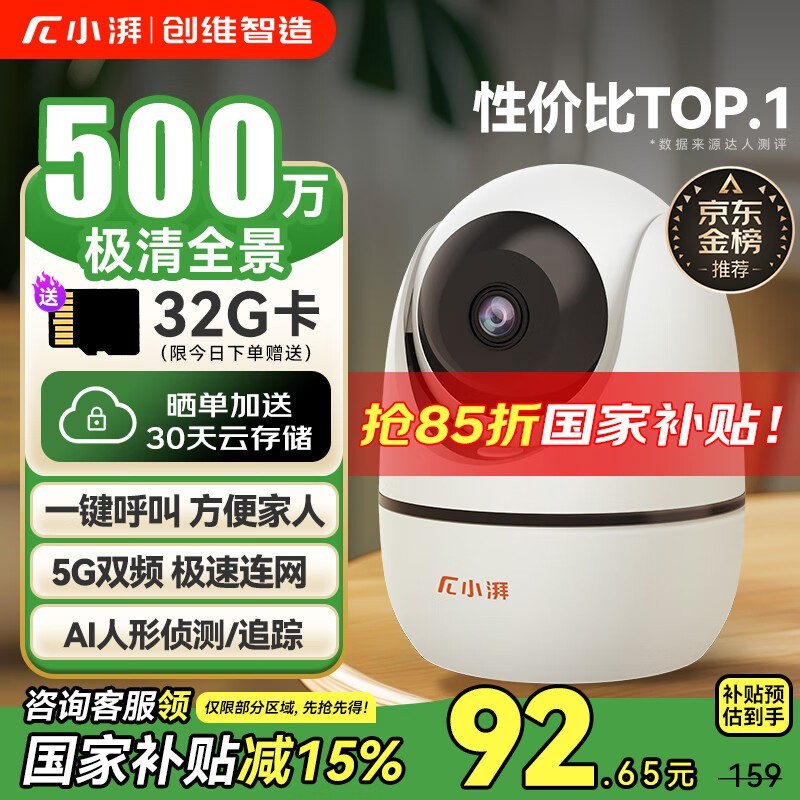 小湃P50Plus宠物监控摄像头360度旋转高清109元包邮