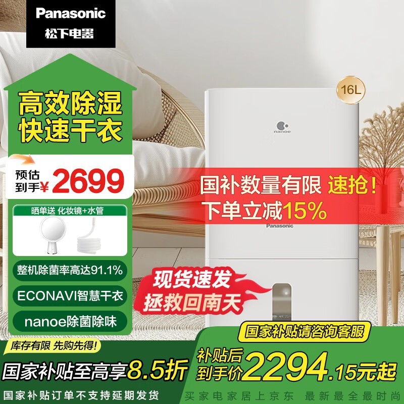 松下16升/天除湿机F-32C4YXC优惠价2242元