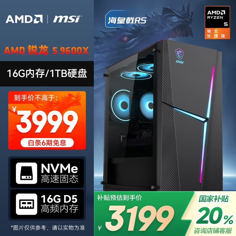 微星海皇戟RS台式机R5-9600X/16G/1TB SSD/600W仅3199元!