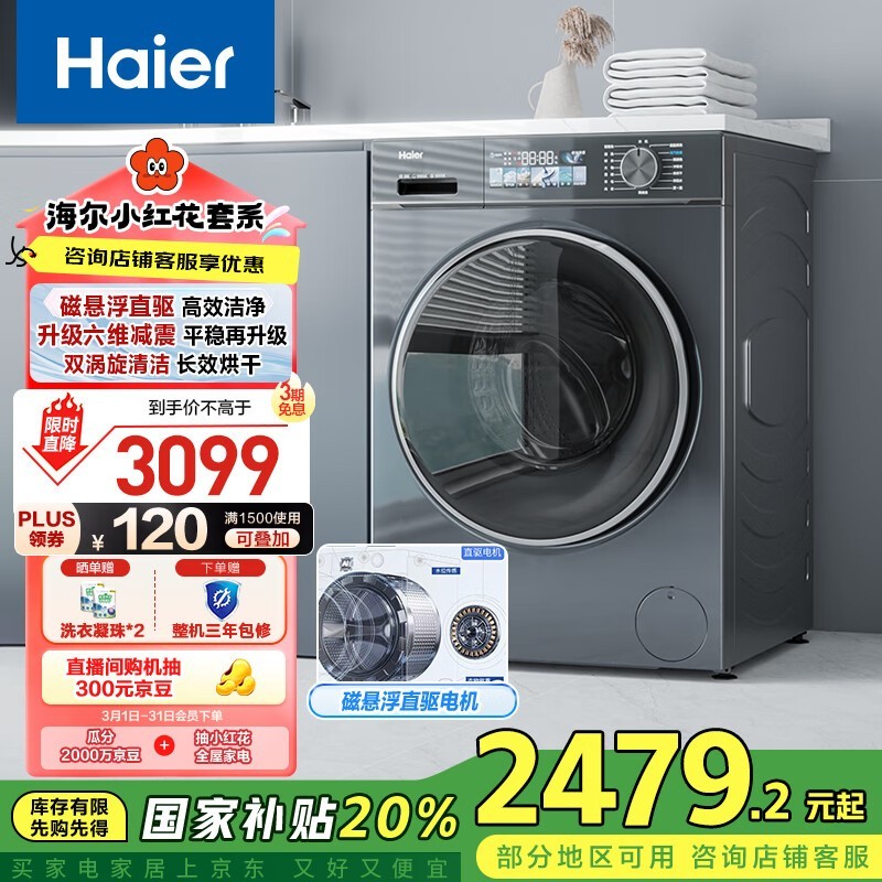 海尔10kg洗烘一体机,京东优惠价2131元