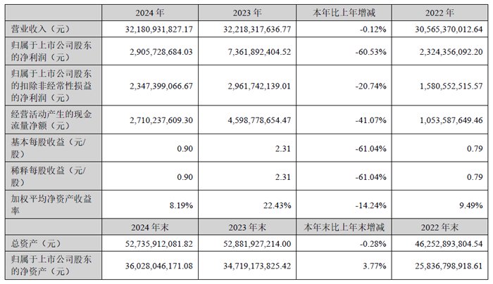 3月29日,浙江大华技术股份有限公司发布2024 年年度报告。报告期内,在国内外诸多因素影响下,公司仍坚持精细化管理和高质量发展的经营理念,实现营业收入321.81亿元,比上年同期下降0.12%;实现扣除非经常性损益后的归属于上市公司股东的净利润23.47亿元,比上年同期下降20.74%。