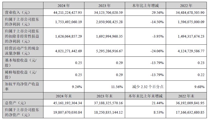 3月29日,广东领益智造股份有限公司发布2024 年年度报告。2024年度实现营业收入 442.11亿元,同比增长 29.56%,归属于上市公司股东的净利润 17.53亿元,经营性现金净流入 40.21亿元。公司新业务收入规模提升幅度较大,精益化运营效率保持行业领先水平,持续保持稳健经营。