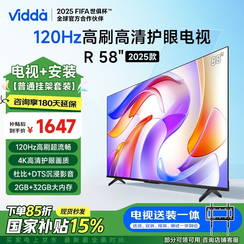 Vidda海信58英寸R58 2025款电视京东优惠价1357元