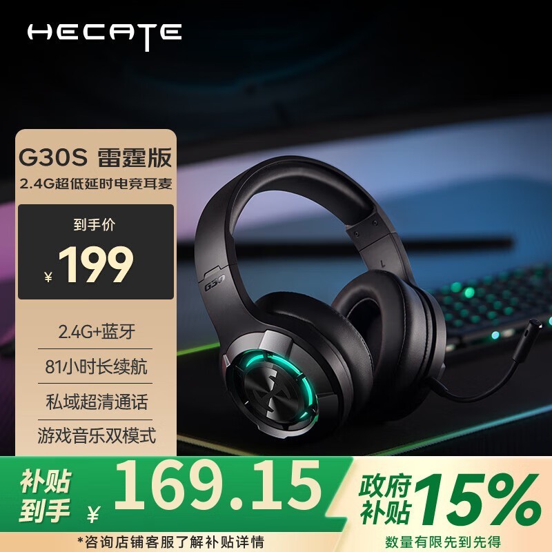 漫步者HECATE G30S雷霆版游戏耳机仅199元享沉浸音效