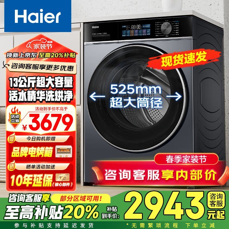 海尔XQG130-HLE53E洗烘一体机13公斤大容量洗衣机仅2893元