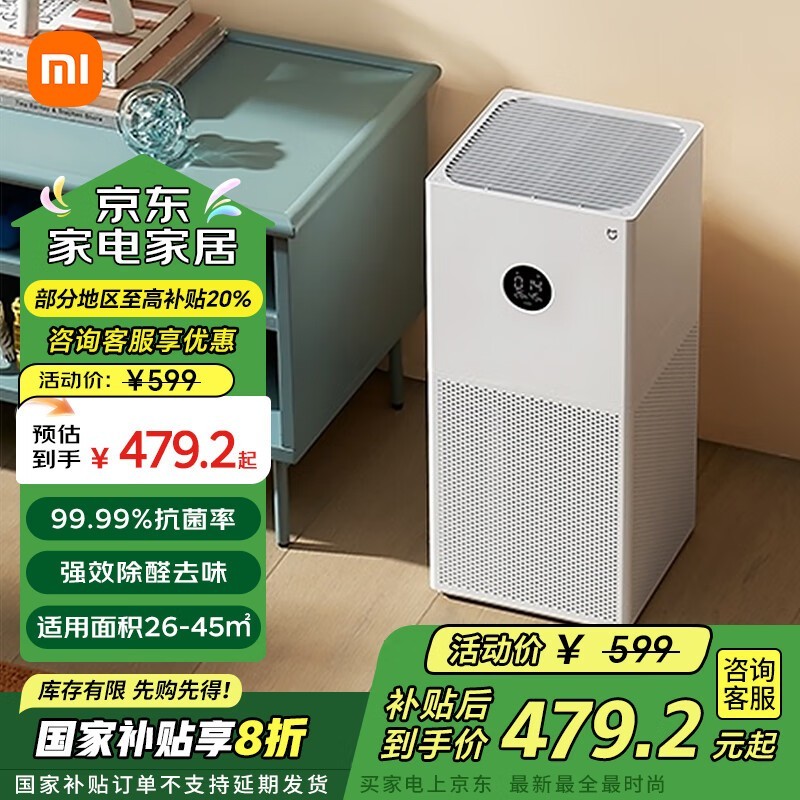 小米米家空气净化器4lite卧室用低至431元