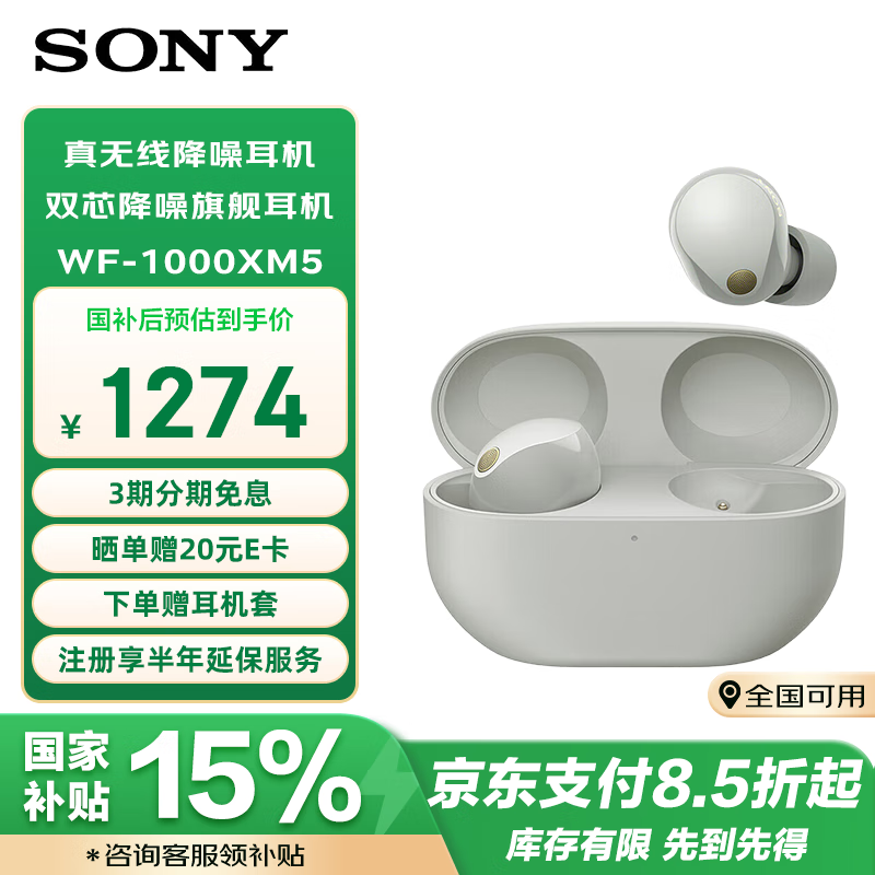 索尼WF - 1000XM4蓝牙耳机促销 原价1399现1274