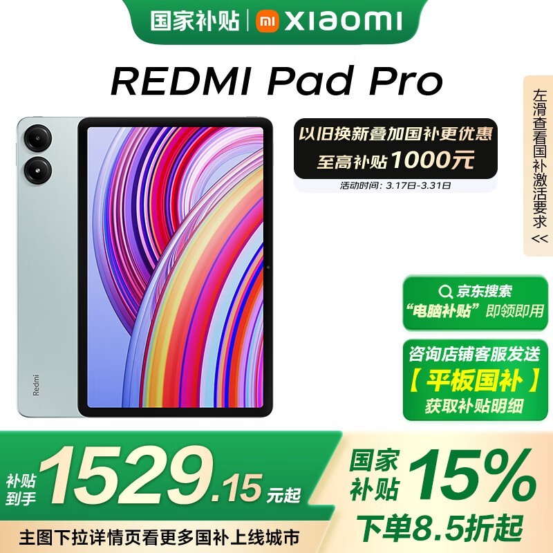 红米Pad Pro 12英寸平板电脑京东特惠至1529元