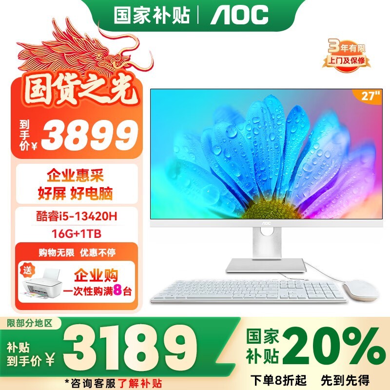AOC大师387一体机,27英寸i5款京东优惠价
