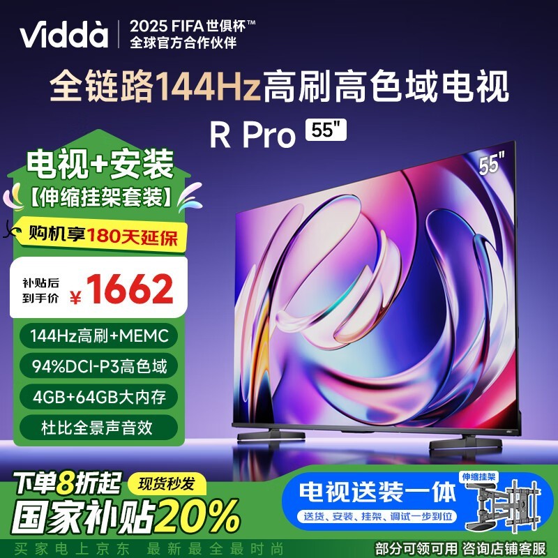 Vidda R Pro 55英寸海信电视144Hz高刷屏仅1389元