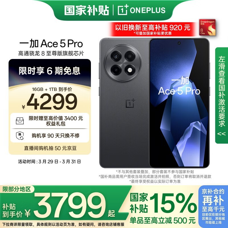 一加OnePlus Ace 5 Pro 5G手机潜航黑16GB+1TB京东特惠