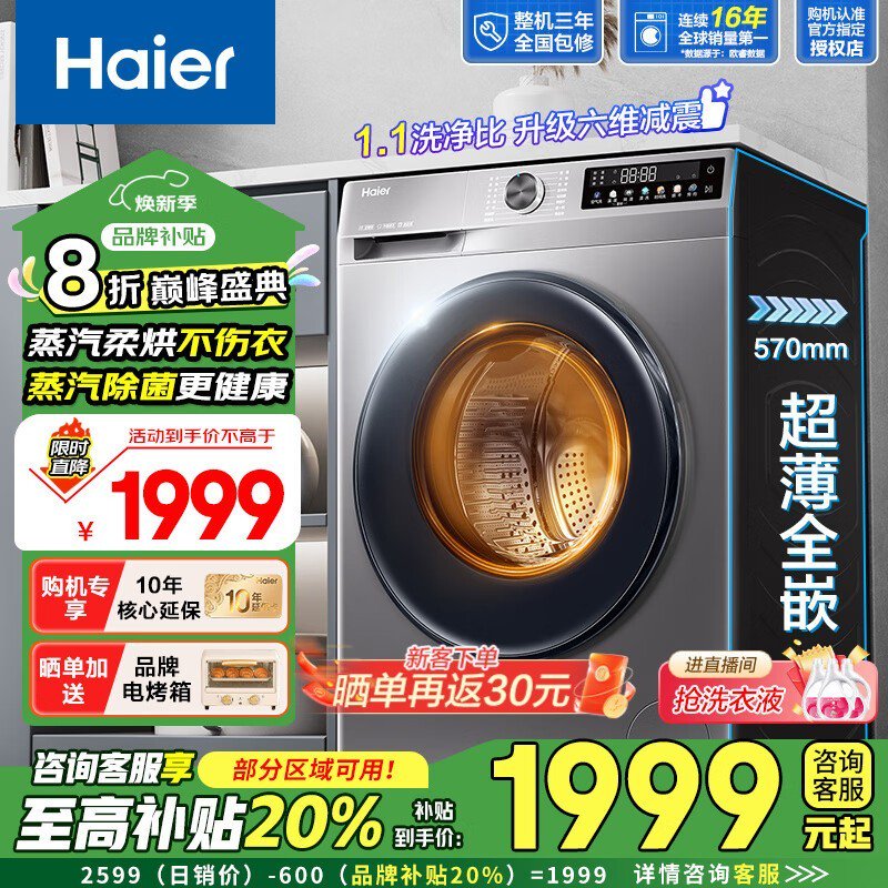 海尔Haier XQG100 - H507S洗烘一体机京东超值优惠