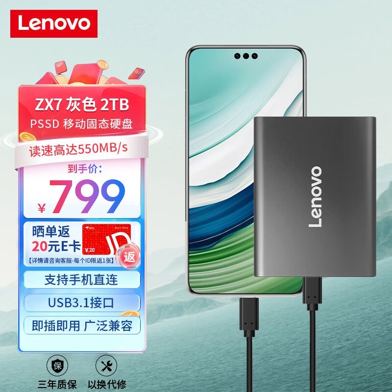 联想Lenovo ZX7 2TB移动硬盘京东促销