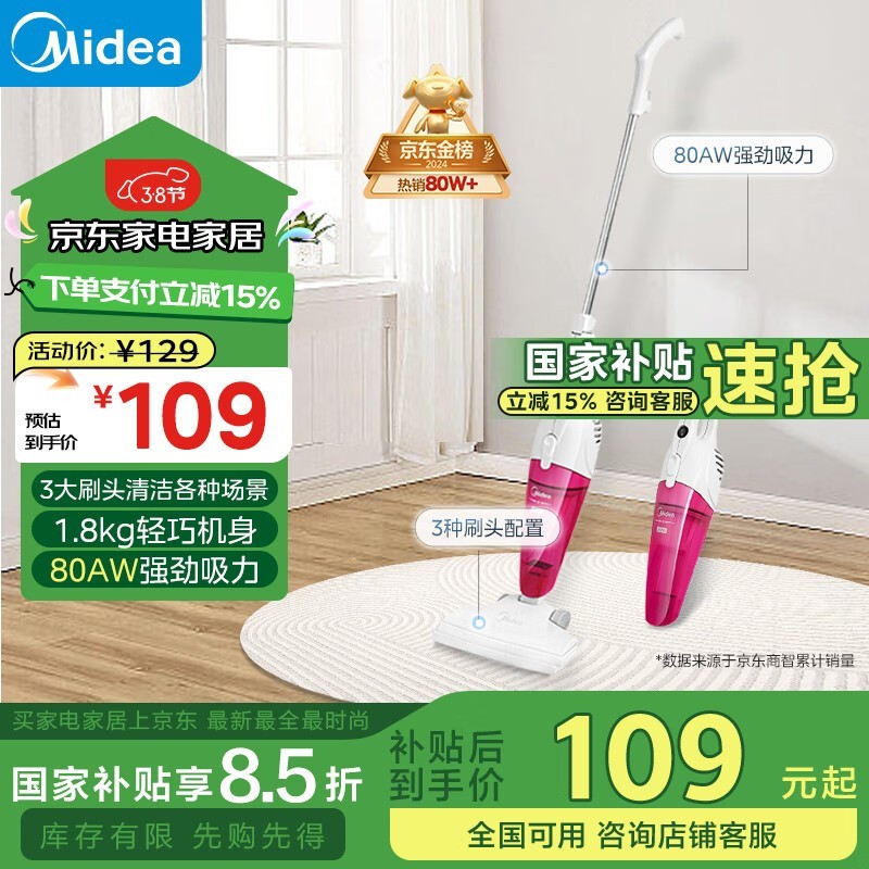 美的SC861A手持式吸尘器红色款超值优惠