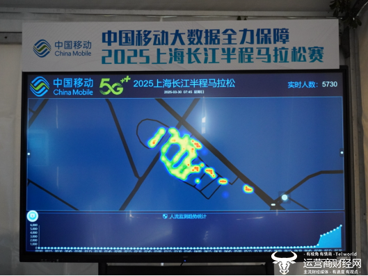 针对赛事期间高密度人流,上海移动为主办方提供精准的“人流热力图分析系统”。通过基站数据与AI算法,智慧解析赛道及周边区域人流密度、流动趋势,生成可视化热力图,帮助有关部门快速定位拥堵点、优化部署。同步在赛事指挥中心设置实时数据大屏,整合人流、交通、气象等多维度信息,为组委会提供“一屏统览”的决策支持。