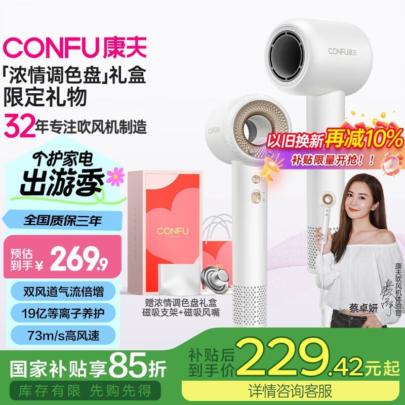 康夫高速电吹风机F9浓情调色礼盒款白色仅205元