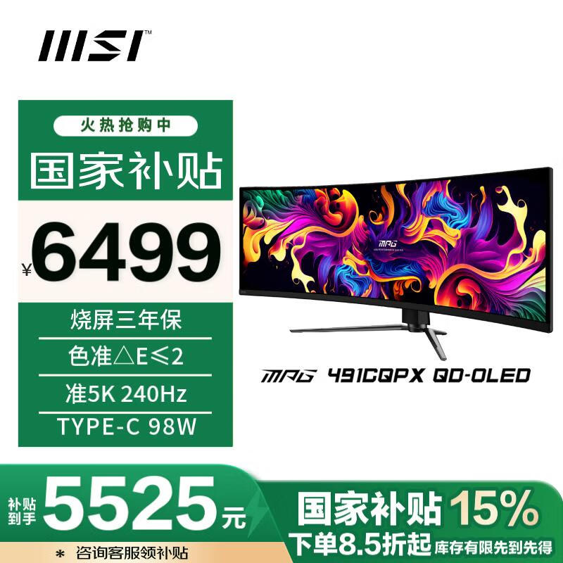 微星MPG 491CQPX显示器京东补贴后价低至5496元