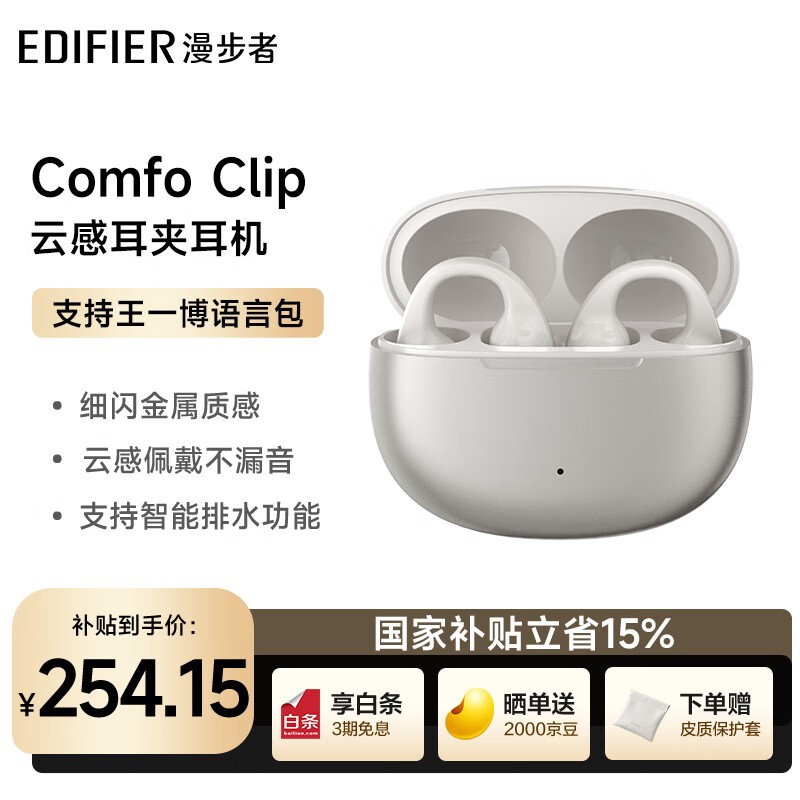 漫步者ComfoClip耳夹式降噪蓝牙耳机轻盈舒适好价不容错过