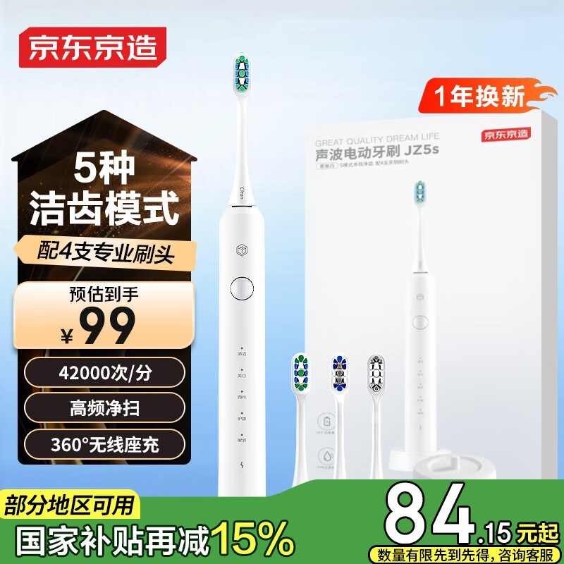 京东京造JZ5s电动牙刷促销中,到手仅83.81元