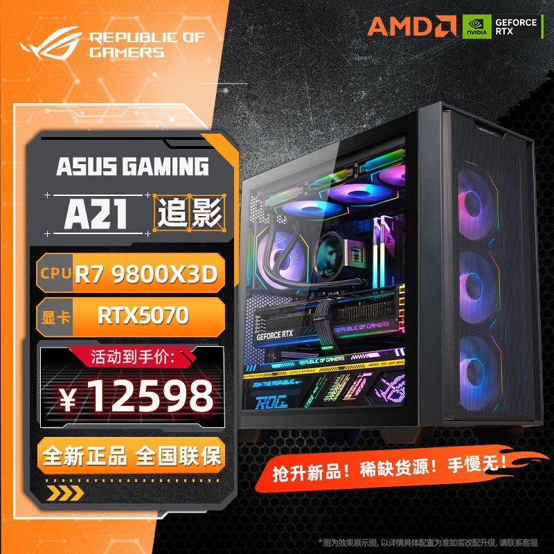 华硕ASUS 9800x3d主机RTX5070ti京东特惠12598元