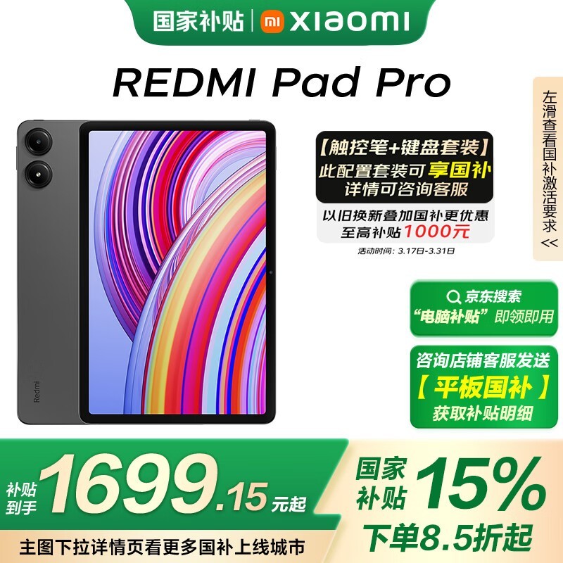 小米Redmi Pad Pro 12.1英寸平板电脑大存储深灰版促销