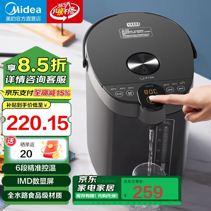 美的MK-SP50E505保温电热水瓶5L大容量多段温控热水壶