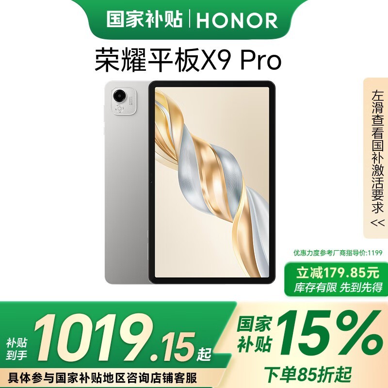 荣耀HONOR平板X9 Pro京东特惠1014元享大屏流畅体验