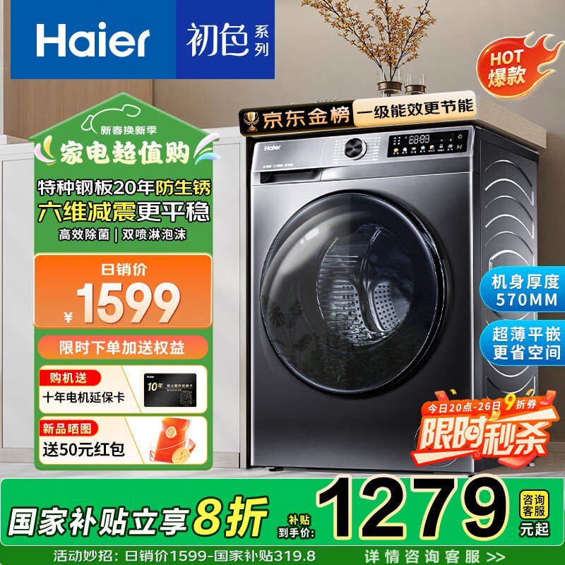 海尔XQG100-507S滚筒洗衣机10公斤大容量超薄设计促销