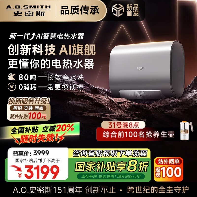 史密斯佳尼特60升电热水器 3006元可入手
