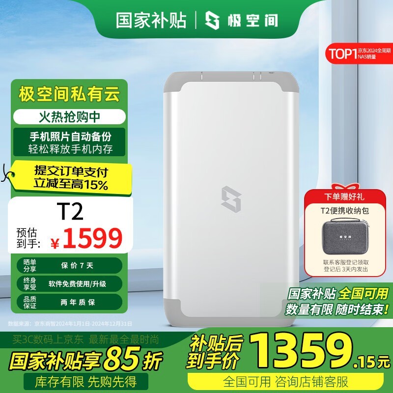 极空间T2 2盘位NAS存储京东国补价1359元
