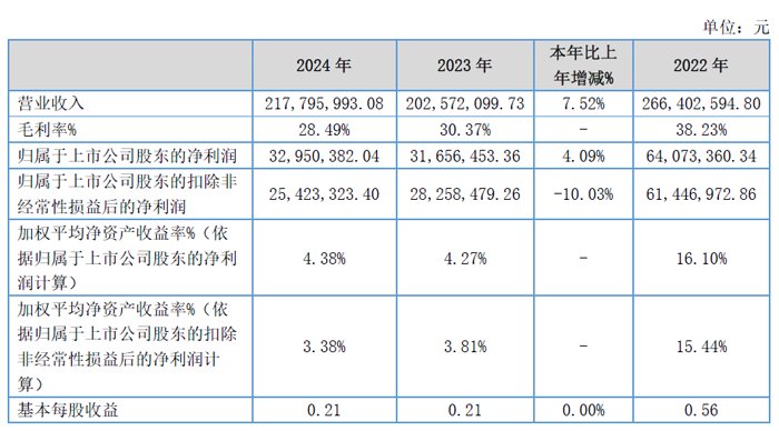 近日,佛山纬达光电材料股份有限公司发布2024年度度报告。报告期内,公司实现营业收入217,795,993.08 元,较上年同期增加15,223,893.35 元,增幅7.52%;归属于上市公司股东的净利润32,950,382.04 元,较上年同期增加1,293,928.68 元,增幅4.09%。