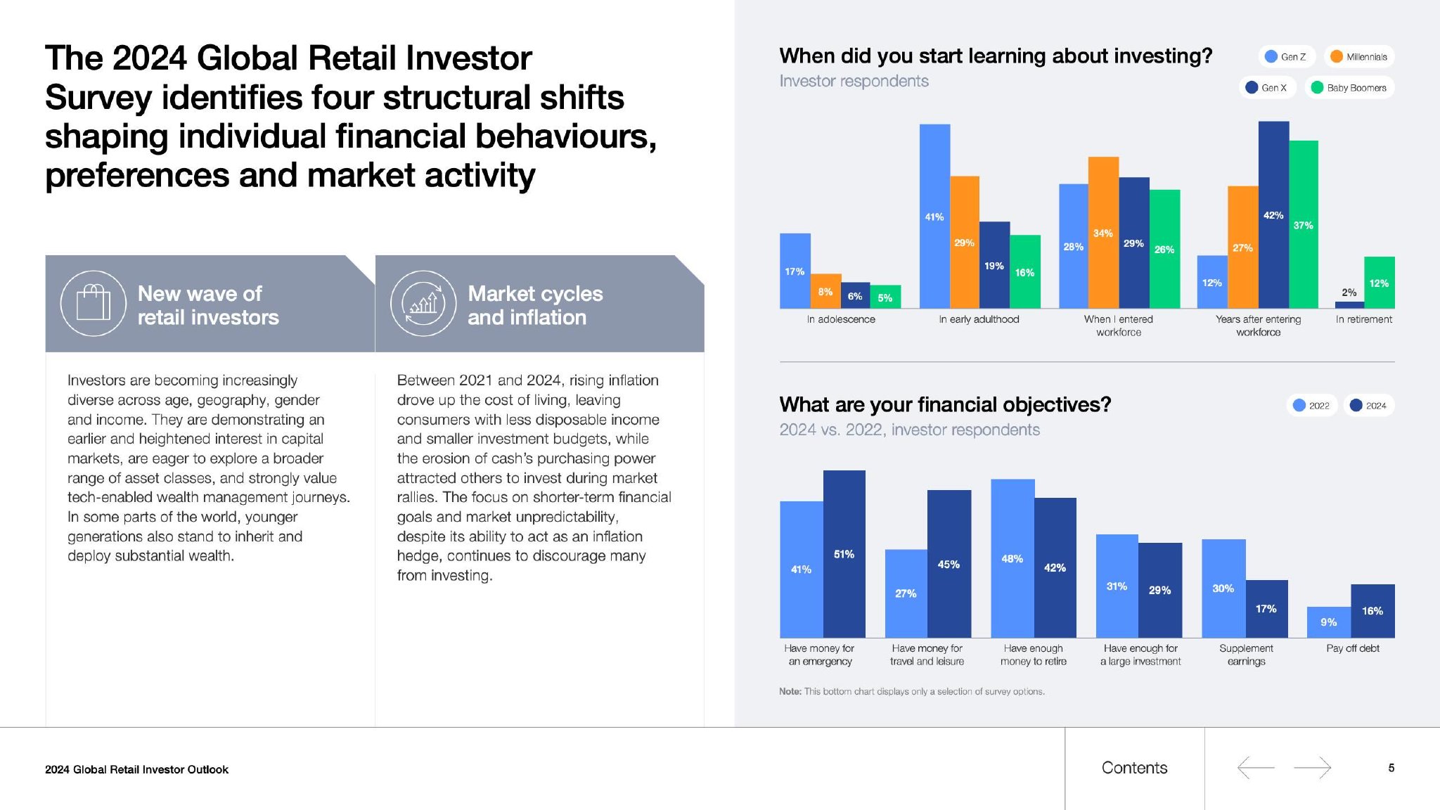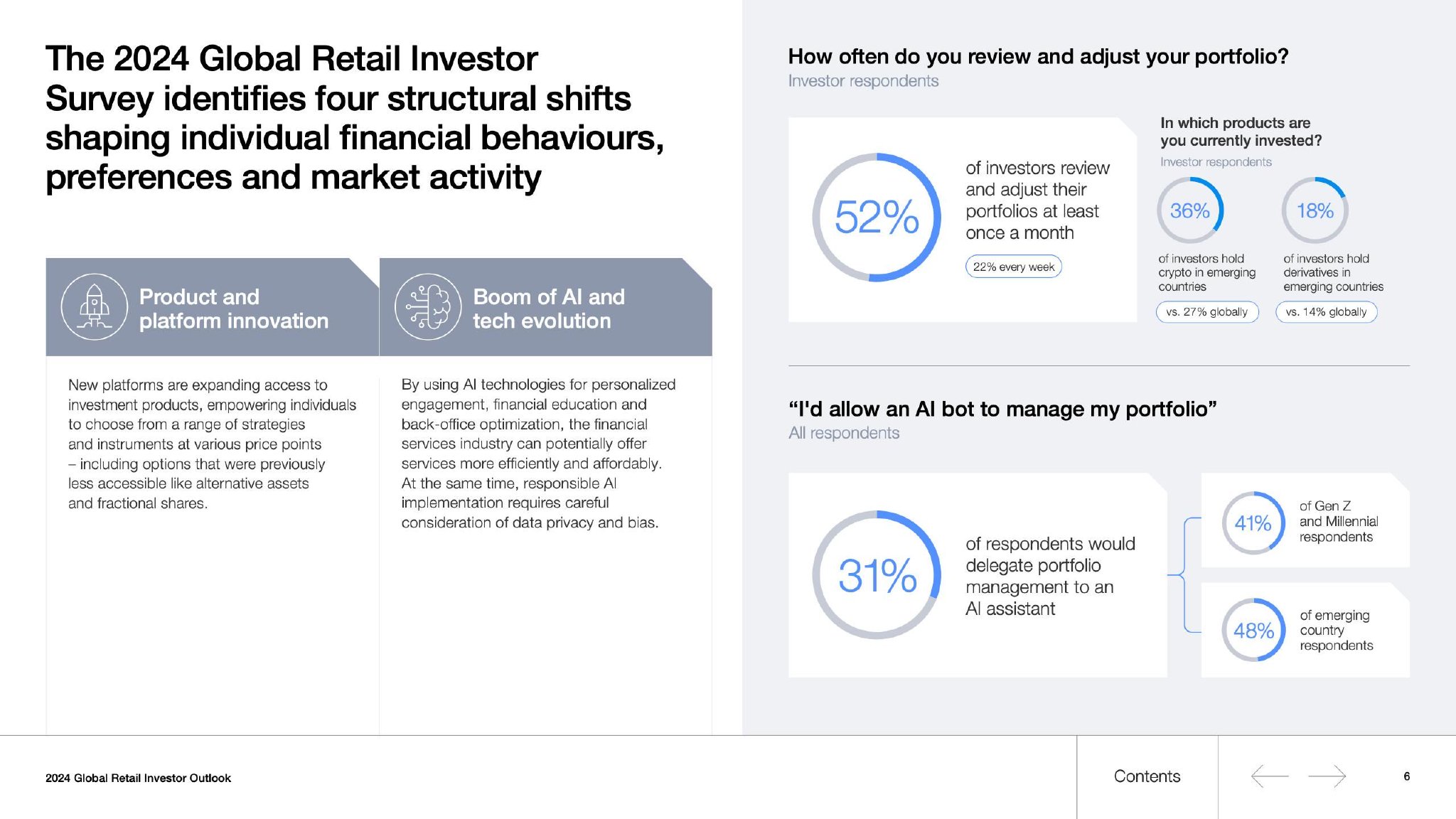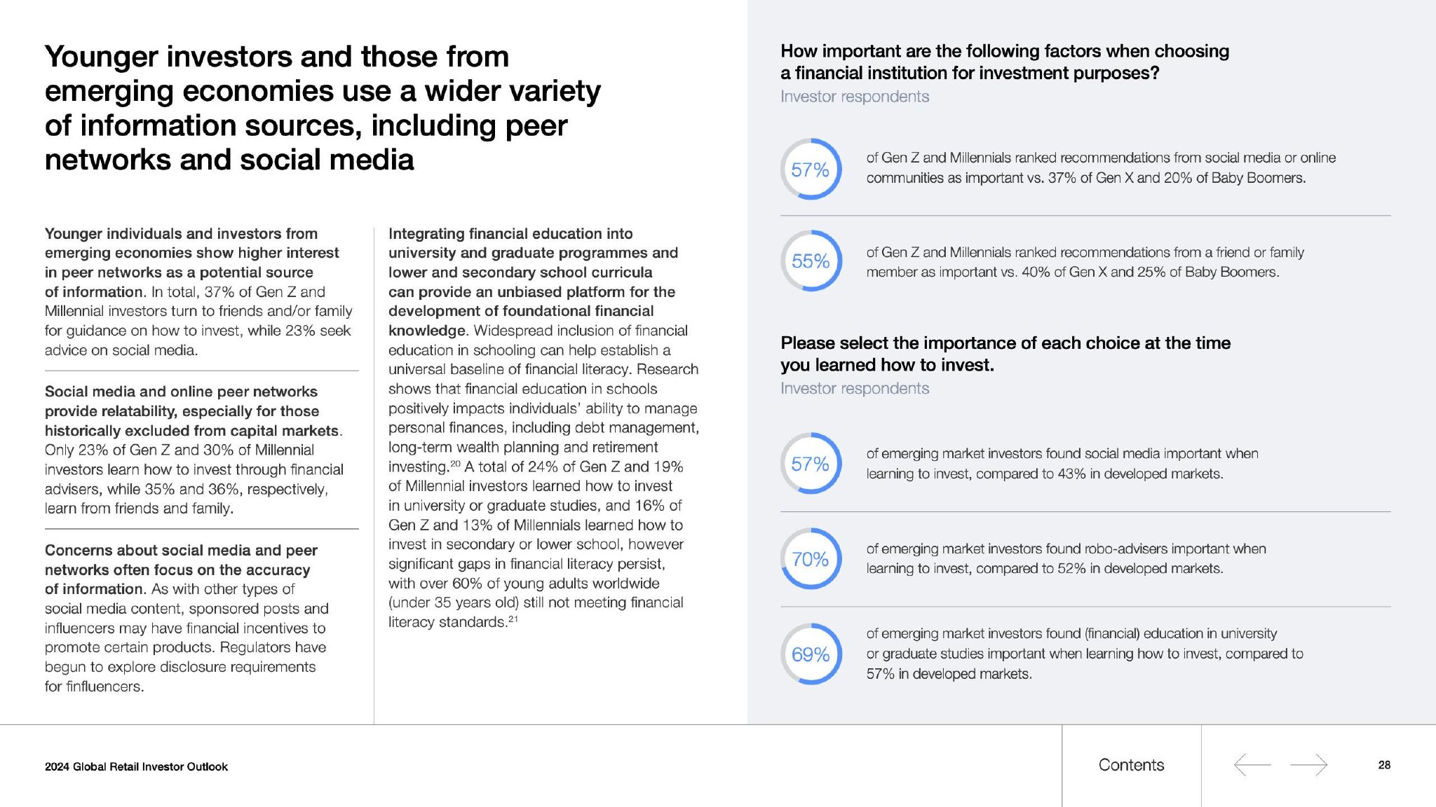2. 科技驱动变革:AI和数字化工具被年轻投资者广泛接受,新兴市场对技术依赖度更高。