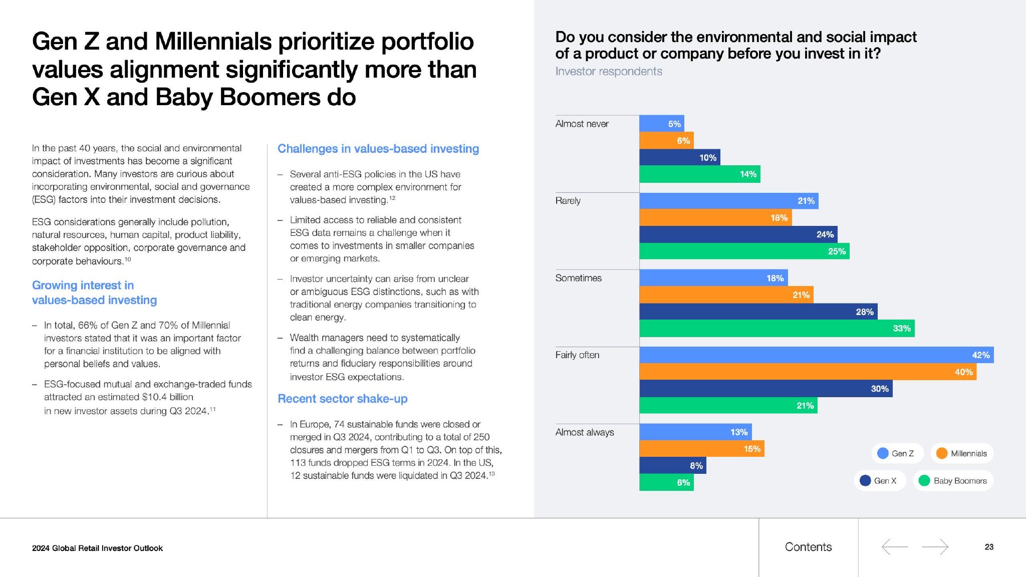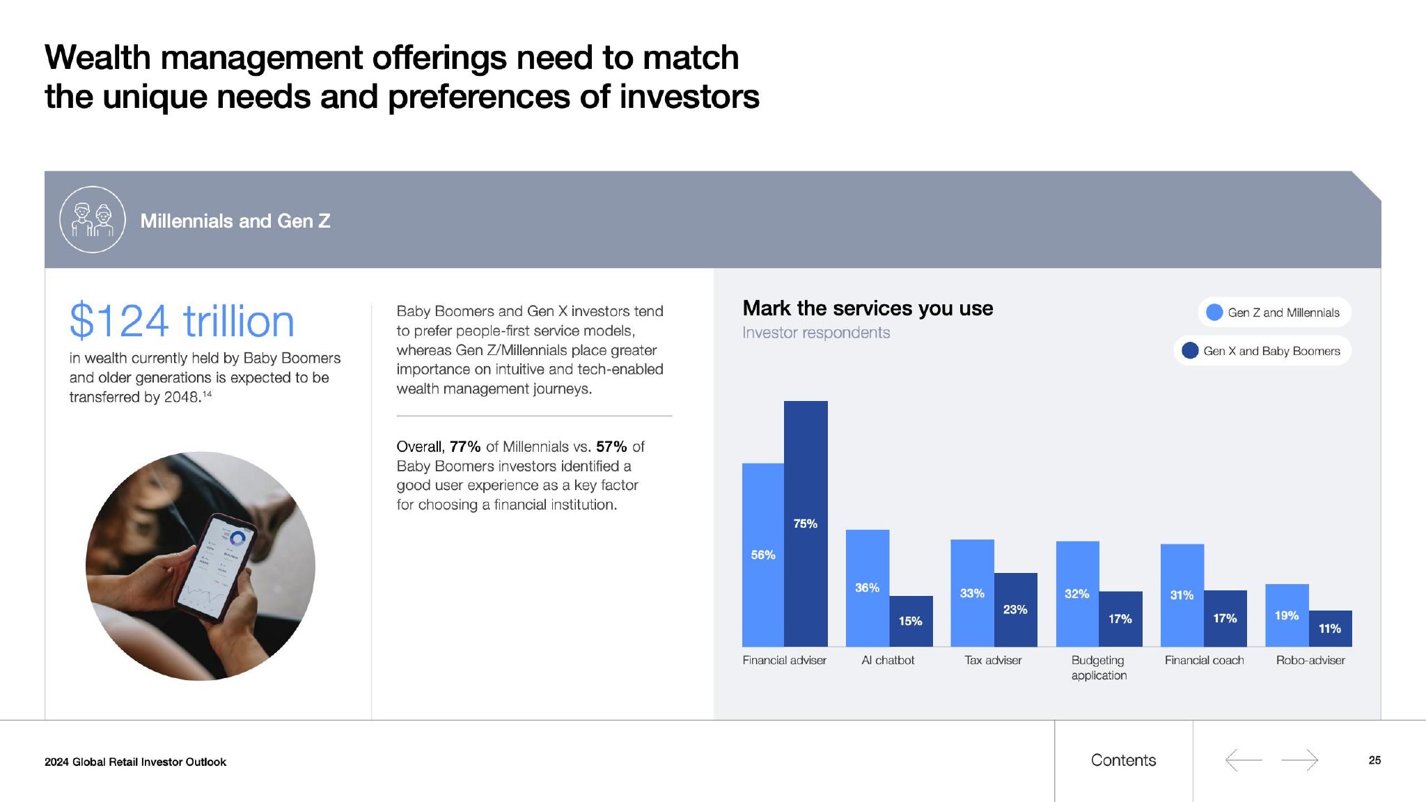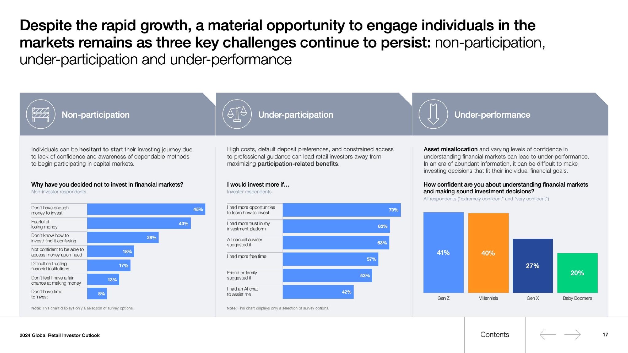 2. 科技驱动变革:AI和数字化工具被年轻投资者广泛接受,新兴市场对技术依赖度更高。