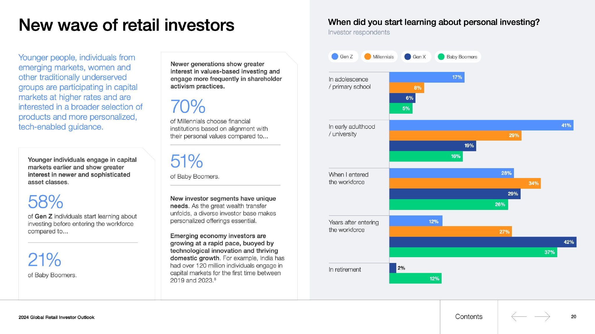Z世代:30%在大学或成年早期开始投资,86%在进入职场时已了解个人投资。