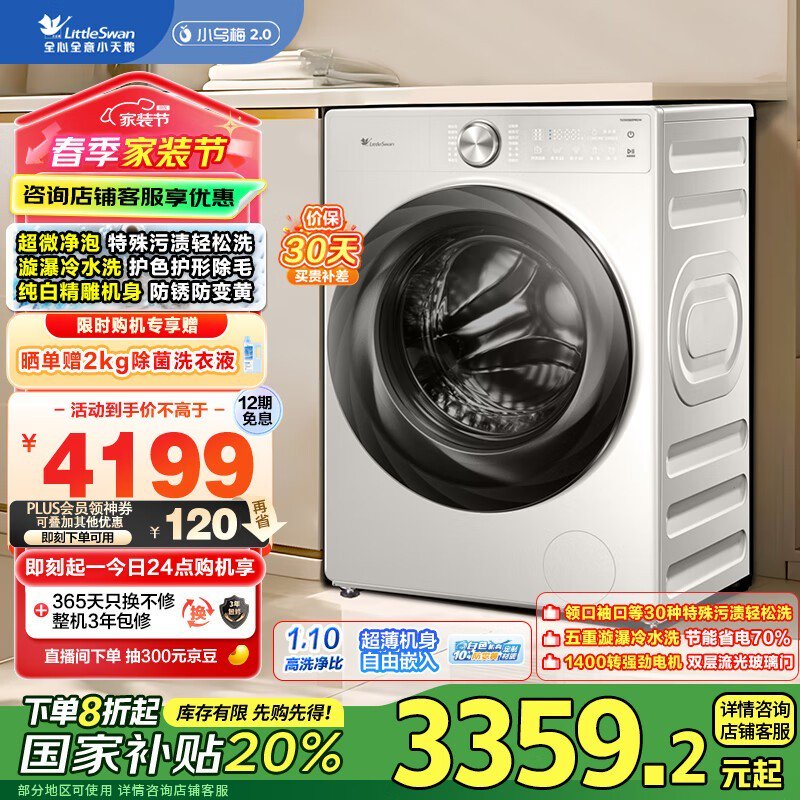 小天鹅TG100S83PROW滚筒洗衣机10kg直销