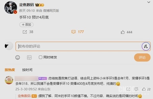 传荣耀手环10将于4月底发布!现款最高售价299元