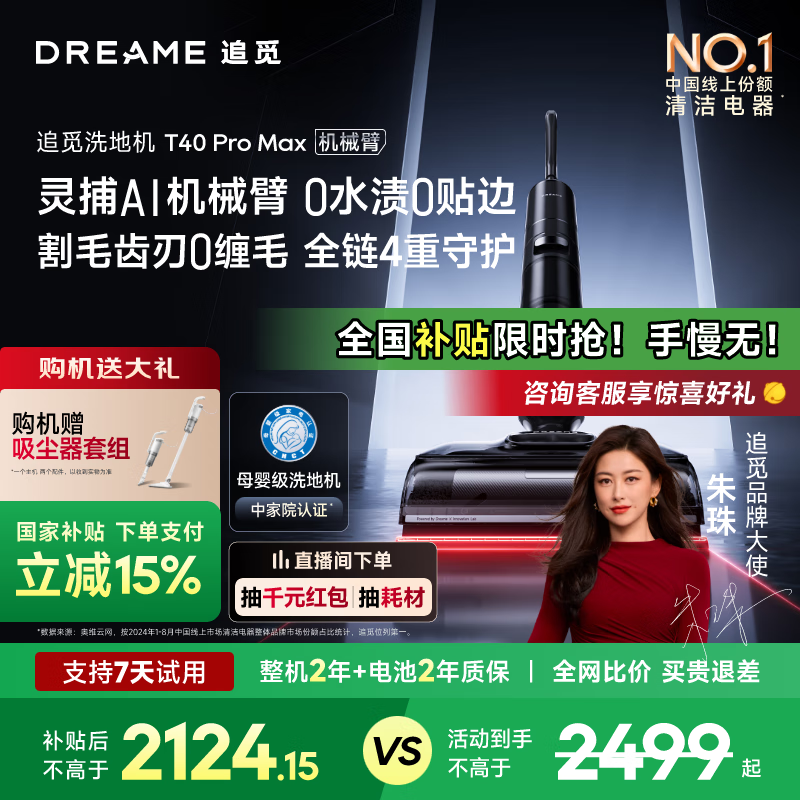 追觅T40 Pro Max洗地机平躺设计家用无线拖地机