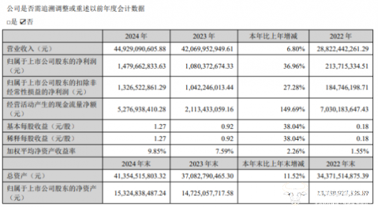 财报显示,2024年中国重汽的营业收入为449.3亿元,同比增长6.8%;归属于上市公司股东的净利润为14.8亿元,同比增长36.96%;扣非净利润为13.27亿元,同比增长27.28%;经营活动产生的现金流量净额为52.77亿元,同比增幅高达149.69%;毛利率为8.68%,同比上升1.05个百分点,业绩表现出色。