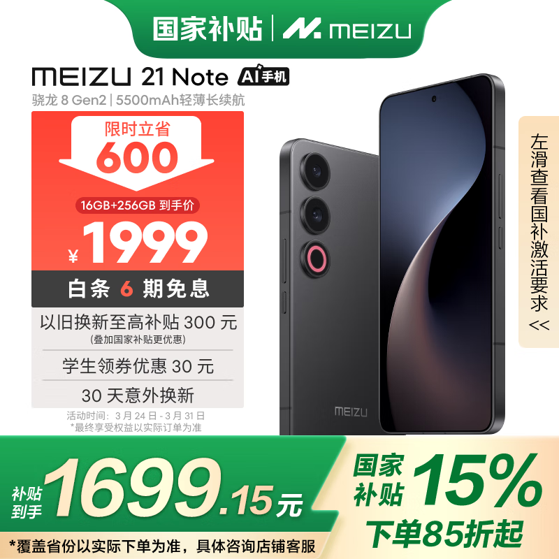 魅族MEIZU 21 Note 5G手机超值优惠低至1435元