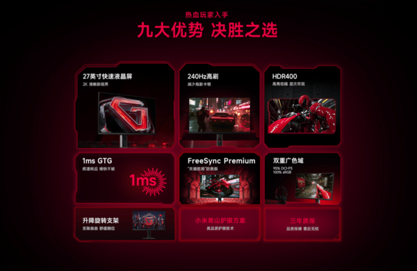 REDMI显示器G27Q 240Hz今日正式开售 优惠价1199元