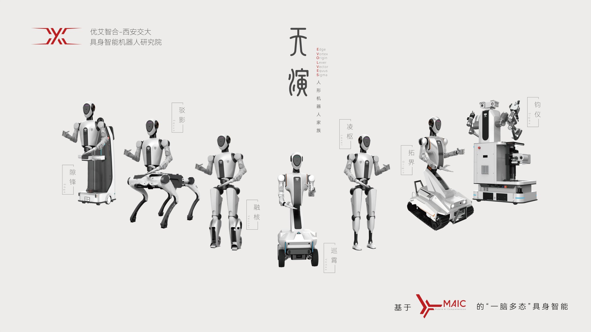 基于场景适应性特征,优艾智合-西安交大具身智能机器人研究院团队构建了“一脑多态”的具身智能大模型,采用多模态通用基座大模型+“一脑多态”端侧具身模型的混合架构,并完成场景应用初步验证。