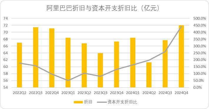 从资本开支和折旧率的关系来看,阿里已经连续两个季度相对调高了折旧比率,但资本开支折旧比依然大幅提升至441.3%左右,扩张性开支非常明显,提高折旧率也意味着未来短期内,资本开支的投入不会少只会多。