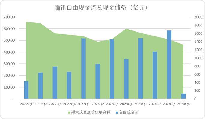 但反应过来的腾讯加大了投资力度,正如刘炽平业绩会的表述,四季度腾讯整体的资本开支绝对称得上中概互联的龙头,并且以资本开支密度来看,2024年Q4腾讯的资本开支密度达到了惊人的21.2%