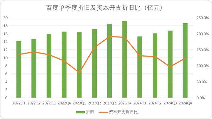 同时,百度也没有出现明显的折旧费率变动,以资本开支折旧比来看,基本上处于维持性资本开支的阶段,似乎感受不到迈入新一轮资本开支周期的潜在动向。