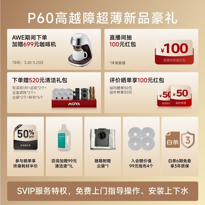 MOVA扫地机器人P60上下水版京东优惠价3809元