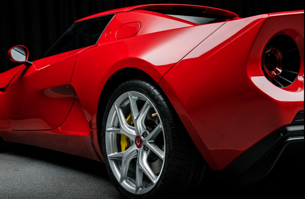 车尾部分,新车采用了宽厚的尾部造型,并使用圆形尾灯组,同时在尾灯外围设置了圆形的通风口,从而提升空气动力学效应。新车后包围还采用了大尺寸的尾部扩散器装置,进一步提升地效能力。车身尺寸方面,新车长宽高分别为4106/1830/1170mm,轴距为2503mm。